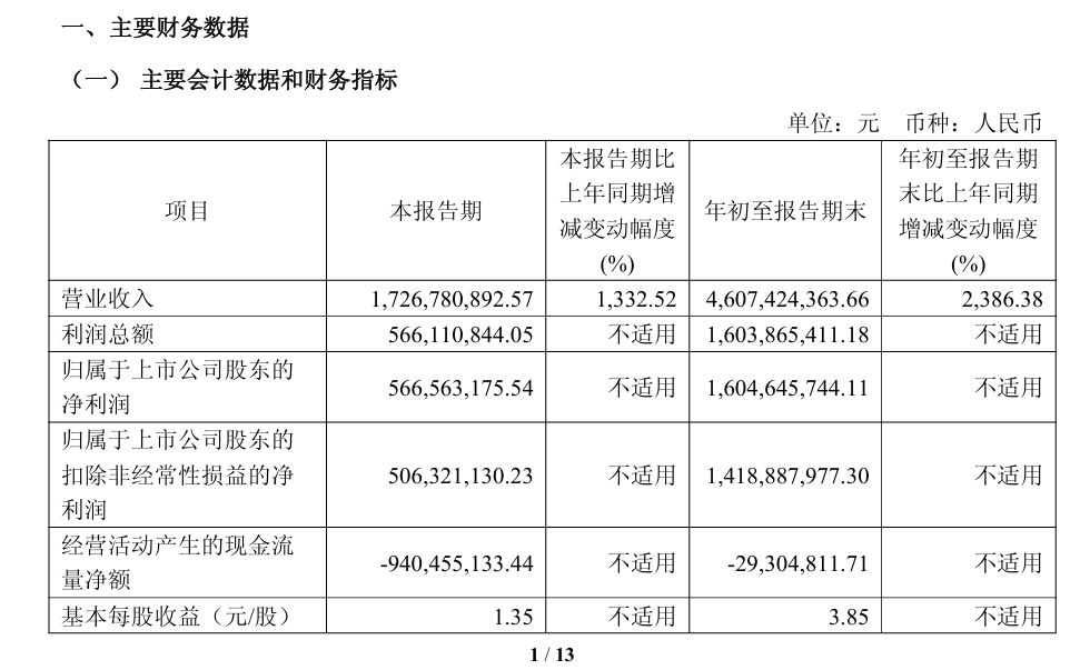 10月17日晚,寒武紀(jì)發(fā)布第三季度財(cái)報(bào)。財(cái)報(bào)顯示,公司第三季度營(yíng)收為17.27億元,同比增長(zhǎng)1332.52%;歸母凈利潤(rùn)為5.67億元。前三季度營(yíng)收為46.07億元,同比增長(zhǎng)2386.38%;凈利潤(rùn)為16.05億元。