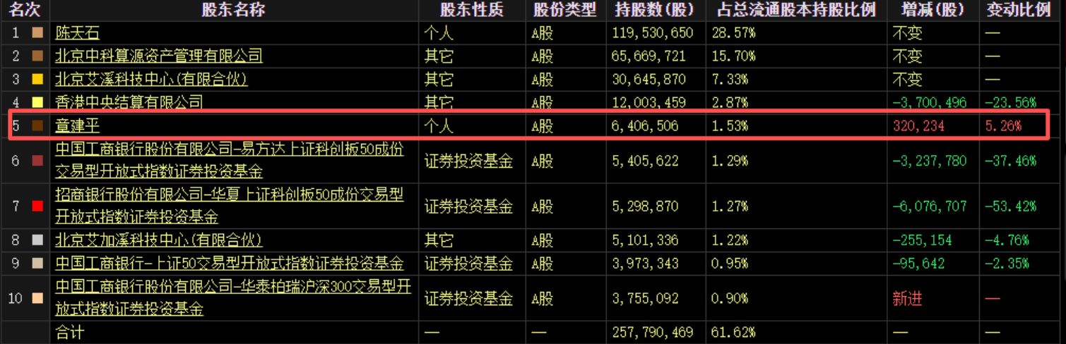 最新十大流通股東名單顯示,牛散章建平位列第五大流通股東,持股比例從二季度末的1.46%升至1.53%。