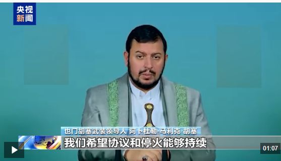 胡塞武裝領導人 阿卜杜勒·馬利克·胡塞:我們希望協議和?;鹉軌虺掷m,希望巴勒斯坦人民能夠獲得在廣泛支持下重建家園的機會,希望以色列停止對加沙的侵略。在當前階段,非常重要的是,保持高度警覺和隨時備戰。