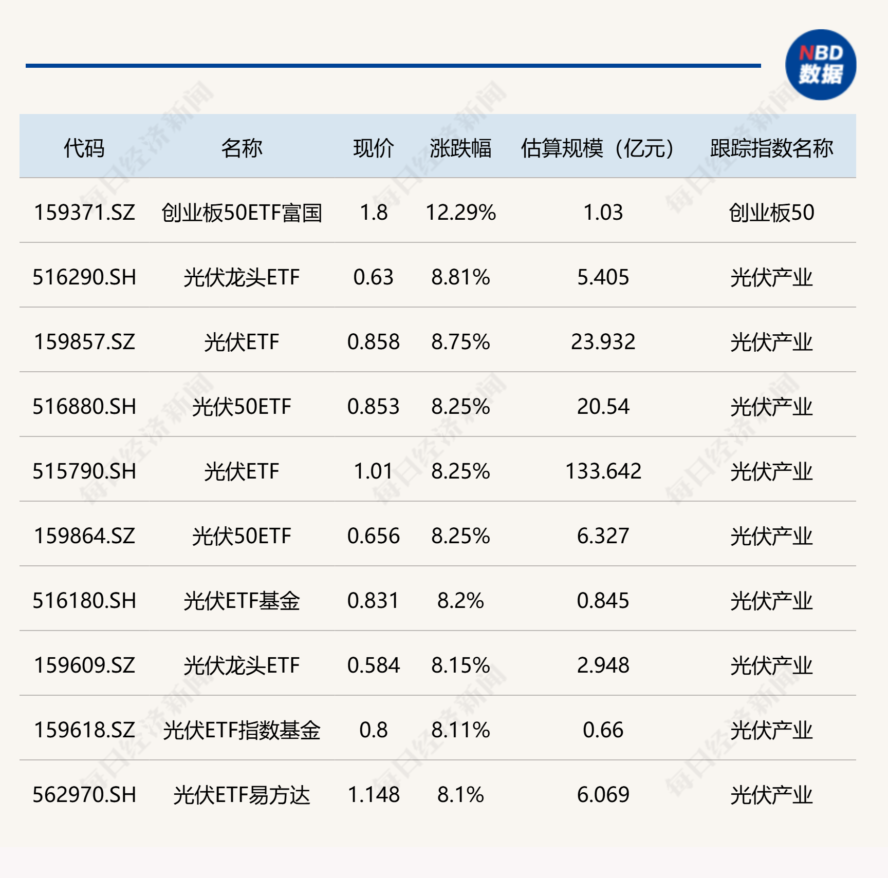 ETF漲跌幅方面,創業板50ETF富國漲超12%,但溢價超8%。