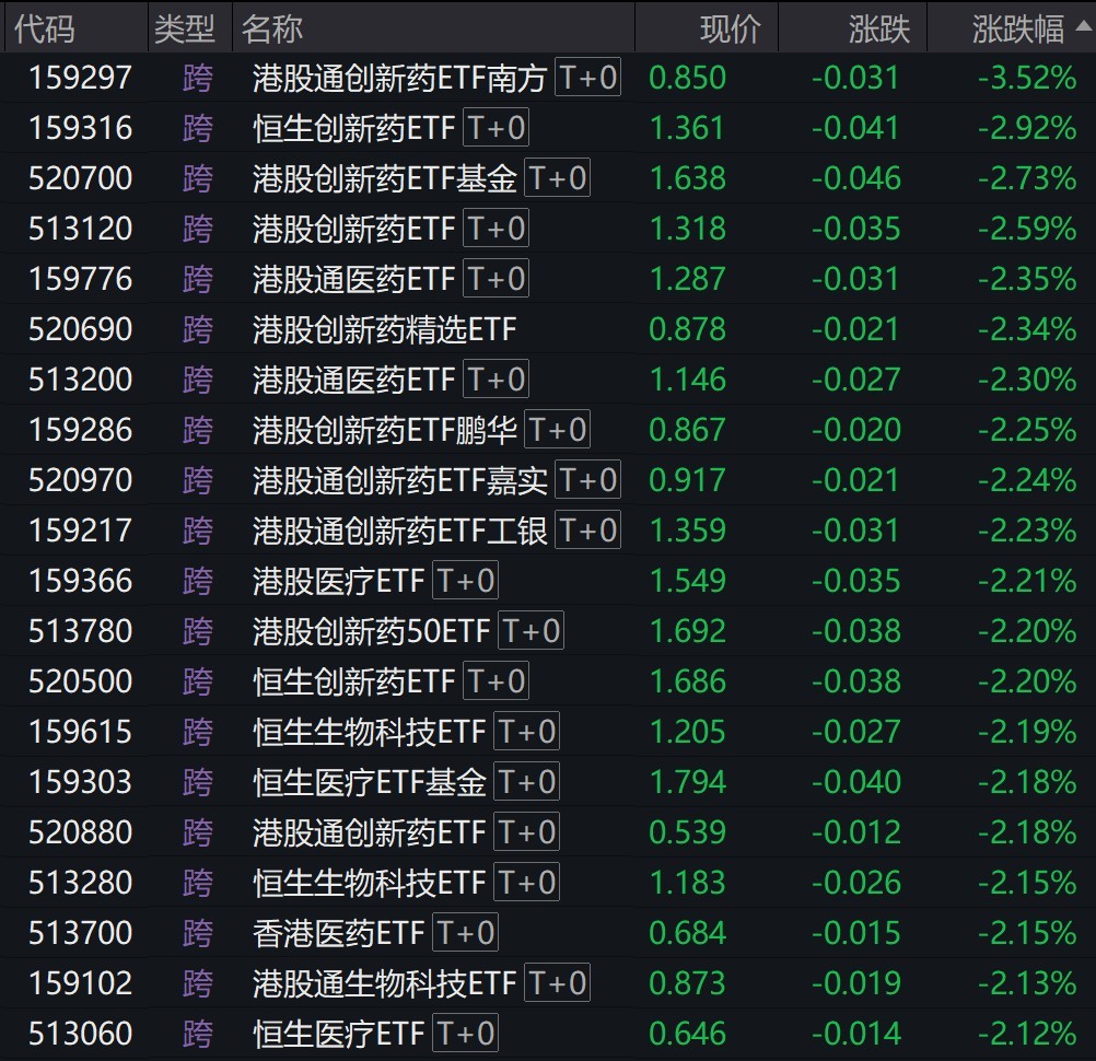 受盤面影響,港股創新藥相關ETF跌超2%。
