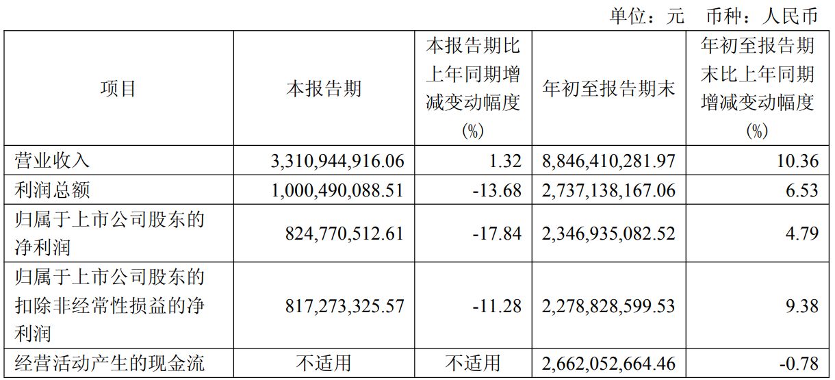 當天,德業股份還發布了2025年第三季度報告。今年第三季度,公司實現營業收入33.11億元,同比增長1.32%;歸母凈利潤8.25億元,同比下降17.84%;基本每股收益為0.92元/股,同比下降19.30%。