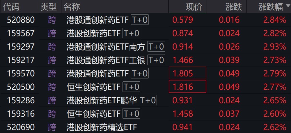 受盤面影響,多只港股創(chuàng)新藥相關(guān)ETF漲近3%。
