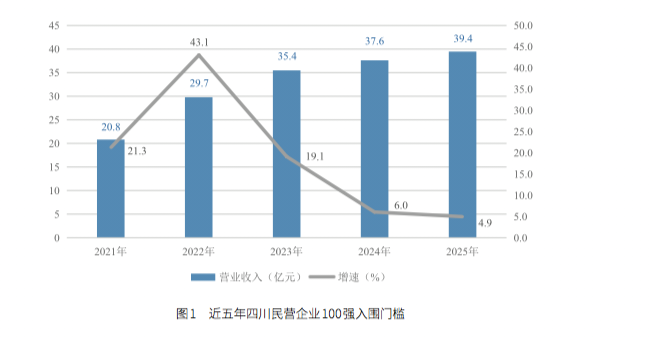 “要進入榜單更難了。”多家民企負責人直言。2025四川民企百強榜以2024年度企業營業收入為入圍門檻,今年的入圍門檻已達到39.45億元,較上年提升近2億元。