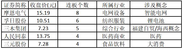 (注:連板個數越多的個股,說明該股被資金重點追捧,可能預示相關概念或行業機會。)