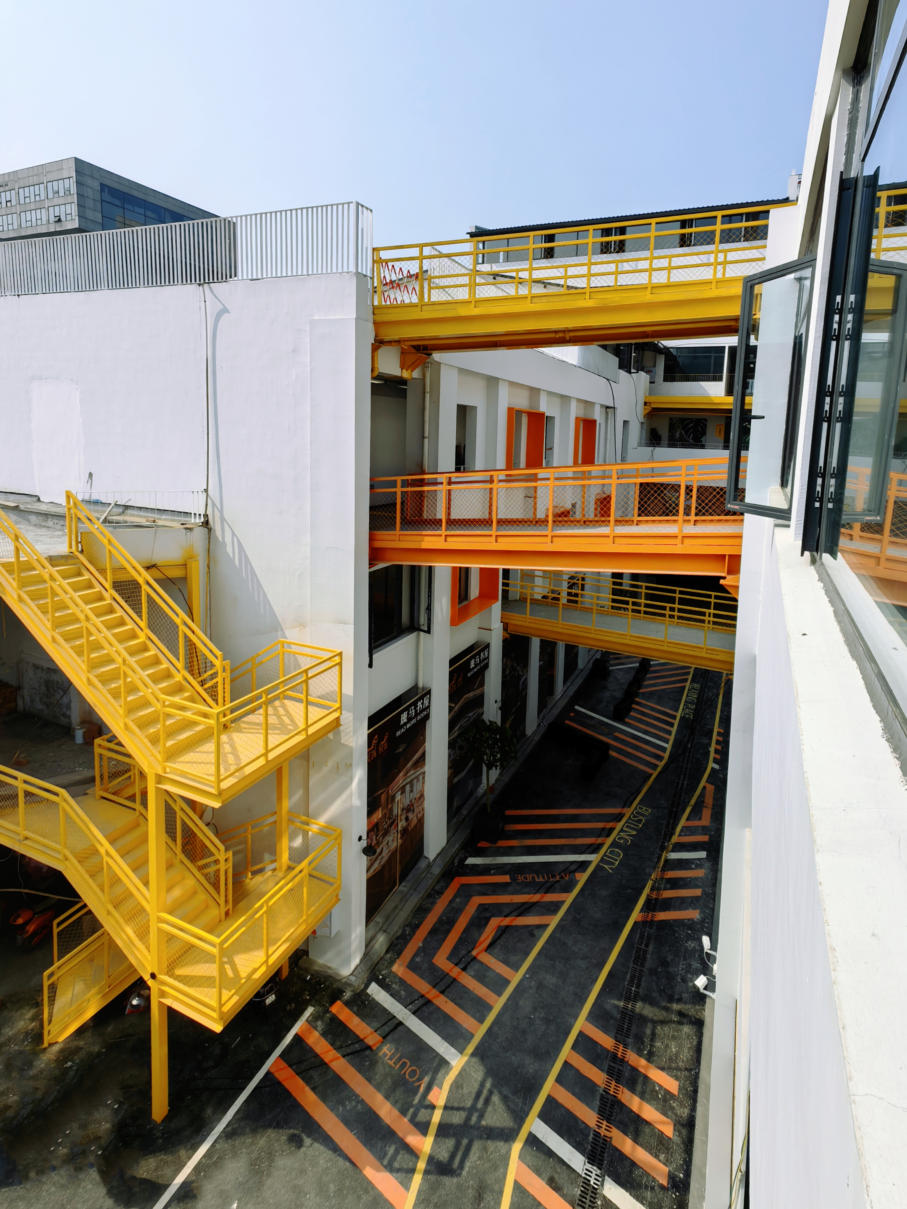 明朗的黃、沉靜的藍(lán)、干凈的白、活潑的橙……站在遠(yuǎn)鴻同創(chuàng)匯外,很難不被這座建筑大膽而鮮明的色彩所吸引。文藝又清新的設(shè)計(jì),不僅保留了舊廠房的整體布局,也巧妙注入了當(dāng)下的新潮流行元素,讓“舊”和“新”融為一體。