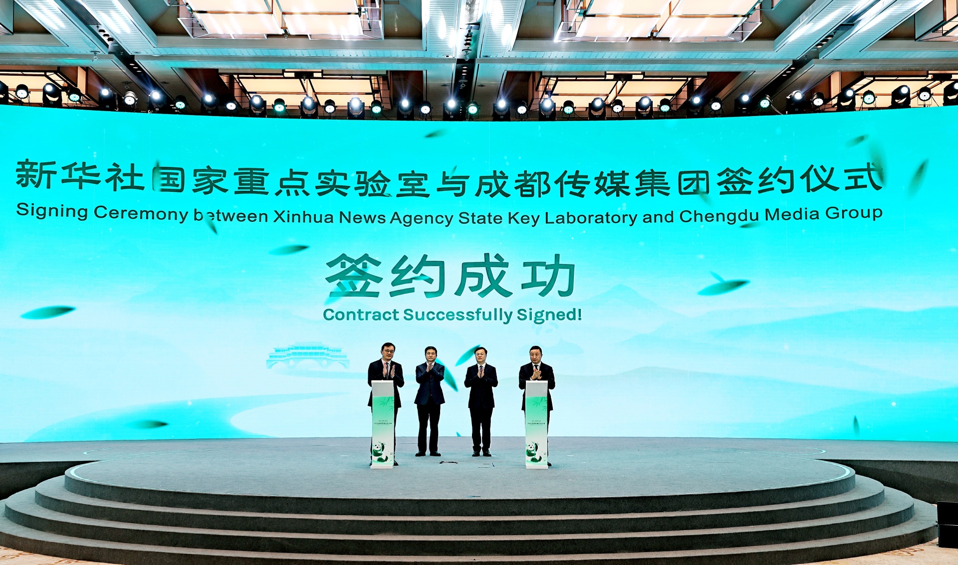 新華社國家重點實驗室與成都傳媒集團戰略合作簽約儀式現場   來源:每經記者張建 攝