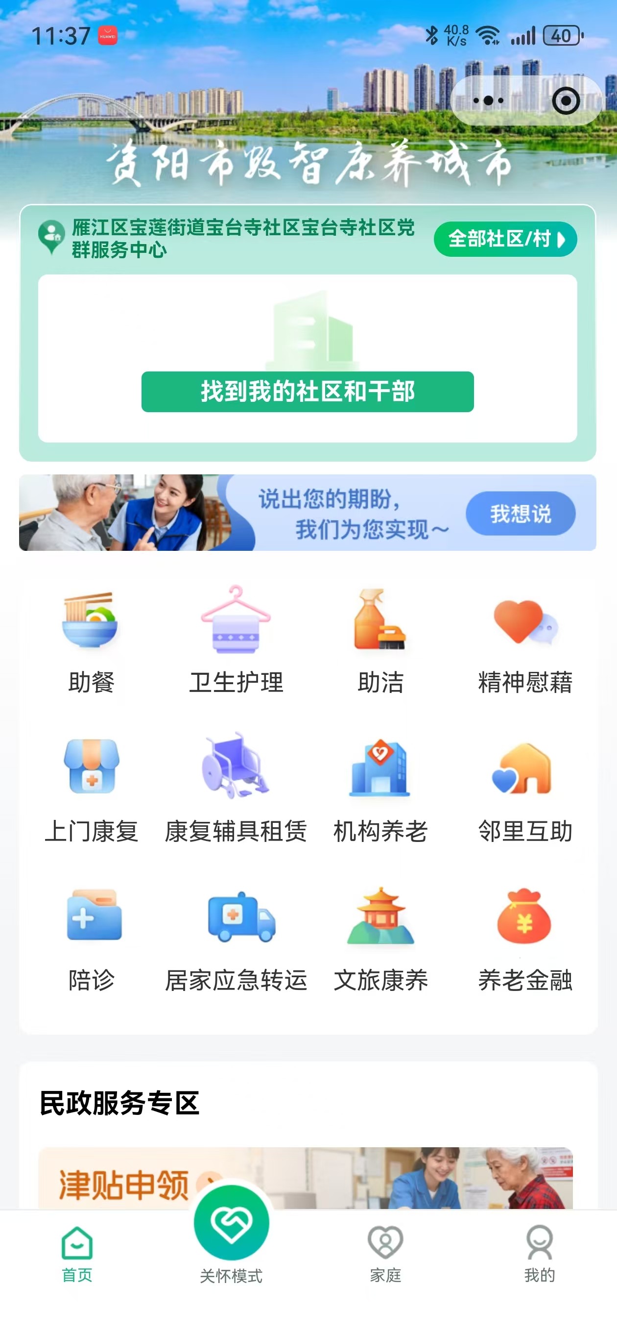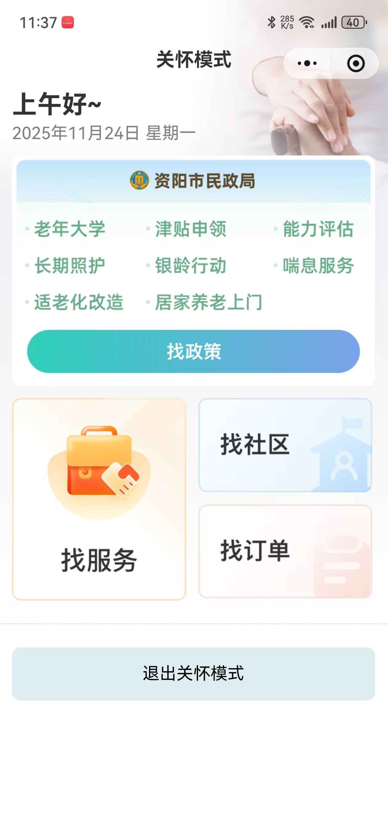 資陽數智康養城市用戶小程序老年人關懷模式。