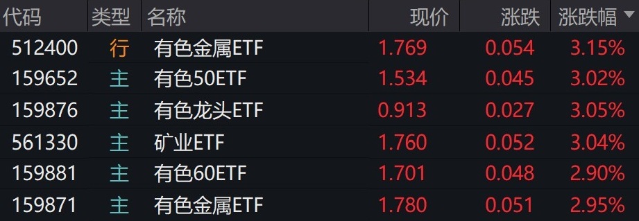 受盤(pán)面影響,有色、礦業(yè)相關(guān)ETF漲約3%。