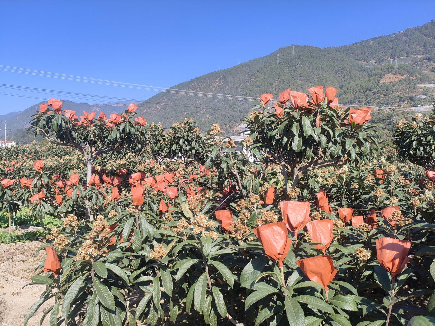 高豐村枇杷已經(jīng)套袋,最早將于明年元旦節(jié)上市。