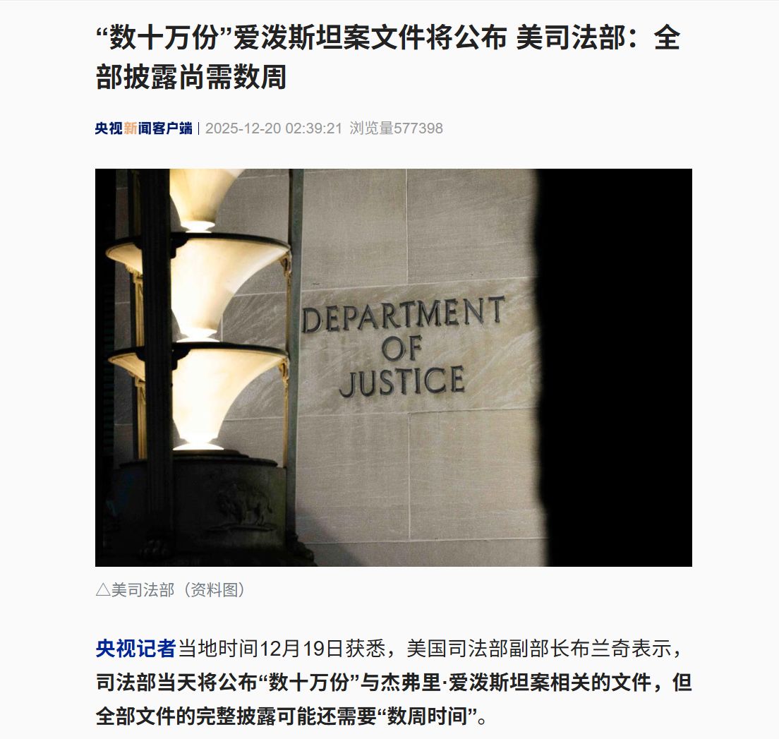 美司法部12月19日開始公布已故富商愛潑斯坦案文件,但大量內(nèi)容被涂黑,提及克林頓較多、特朗普較少。已公布約4000份文件,大多是照片,許多文件被大量編輯,超1200名受害者及其家屬名字被涂黑。白宮和克林頓方面互相指責(zé),民主、共和兩黨多名議員對公布文件不滿,認為不完整、涂黑內(nèi)容太多,新法要求披露的材料也未在其中。