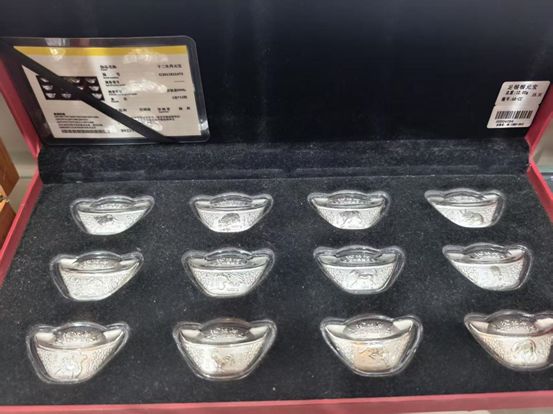 元寶形狀的白銀投資產品 圖片來源:每經記者 趙景致 攝