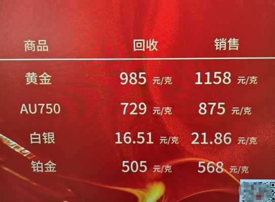 回收價格方面,記者注意到與黃金按照實時價格回收不同,白銀的回收價格會比實時價格低1元左右。